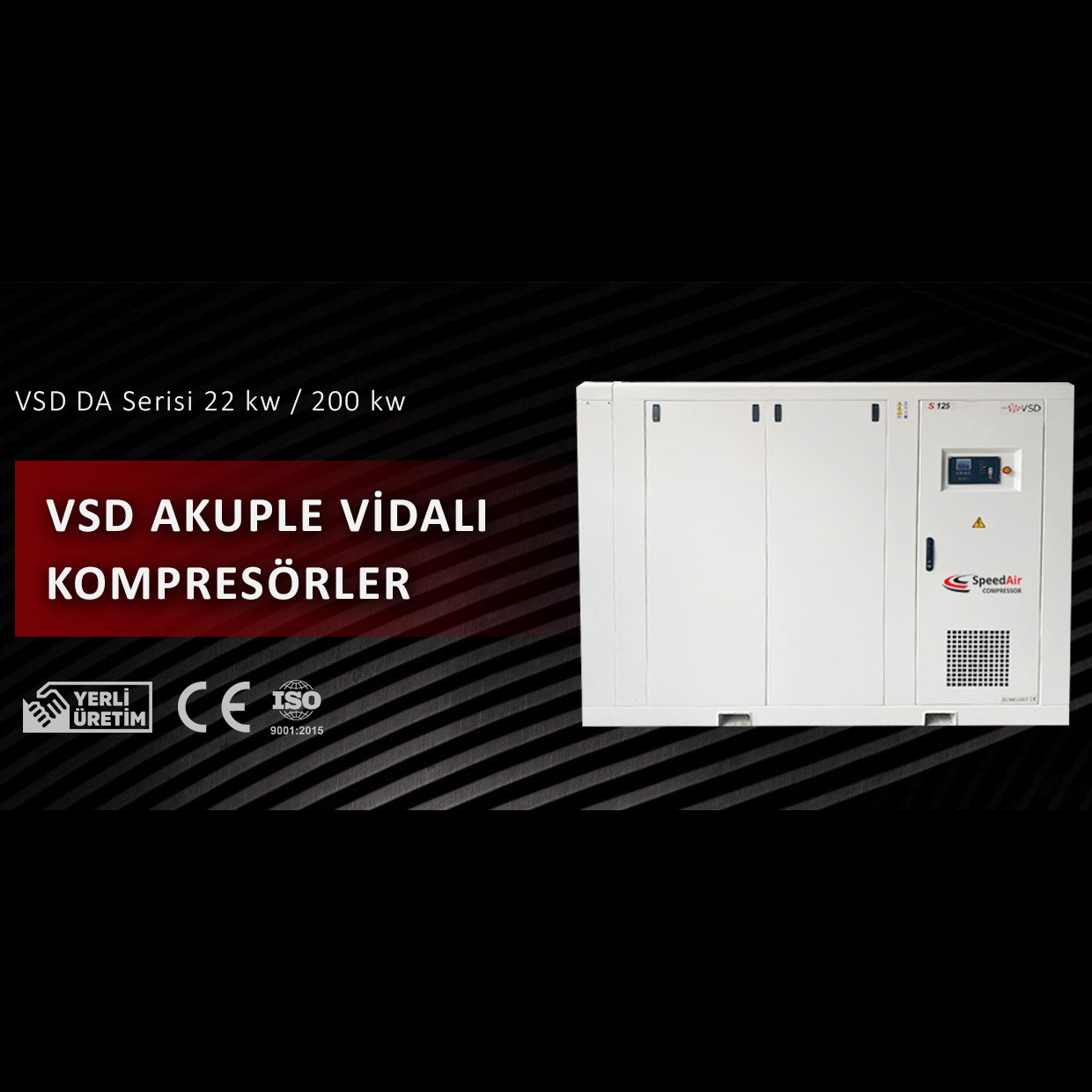 22 kW VSD DA Enerji Tasarruflu Vidalı Kompresör teslimatını tamamladık. SpeedAir Kompresör olarak üstlendiğimiz satış, kurulum ve bakım hizmetlerinin tümünü tamamladık.